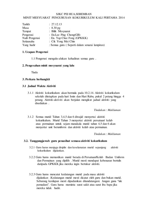 Minit Mesyuarat Kk Kali Pertama 2014 By Yong Mei Chin Flipsnack