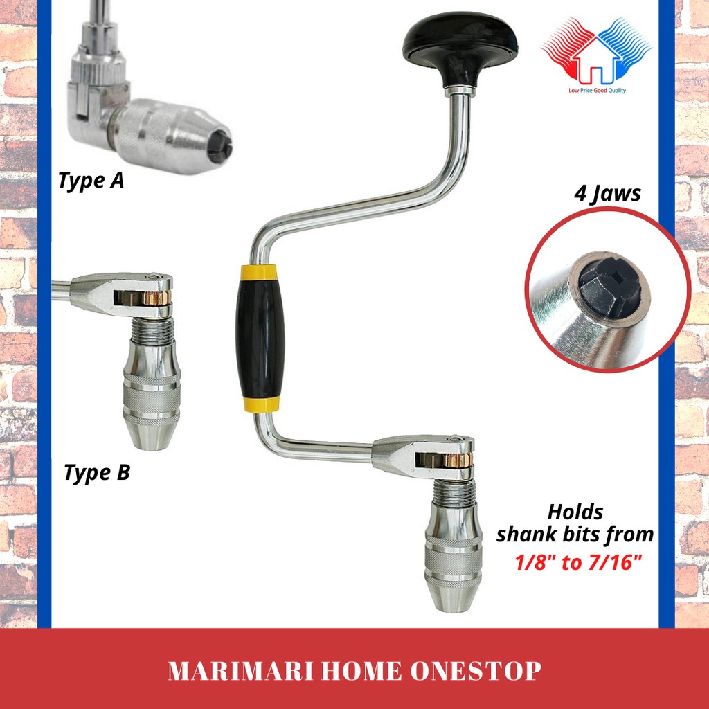 12 4 Jaw Manual Hand Drill Ratchet Bit Brace Gerudi Tangan Manual Hand Turn Shopee Malaysia